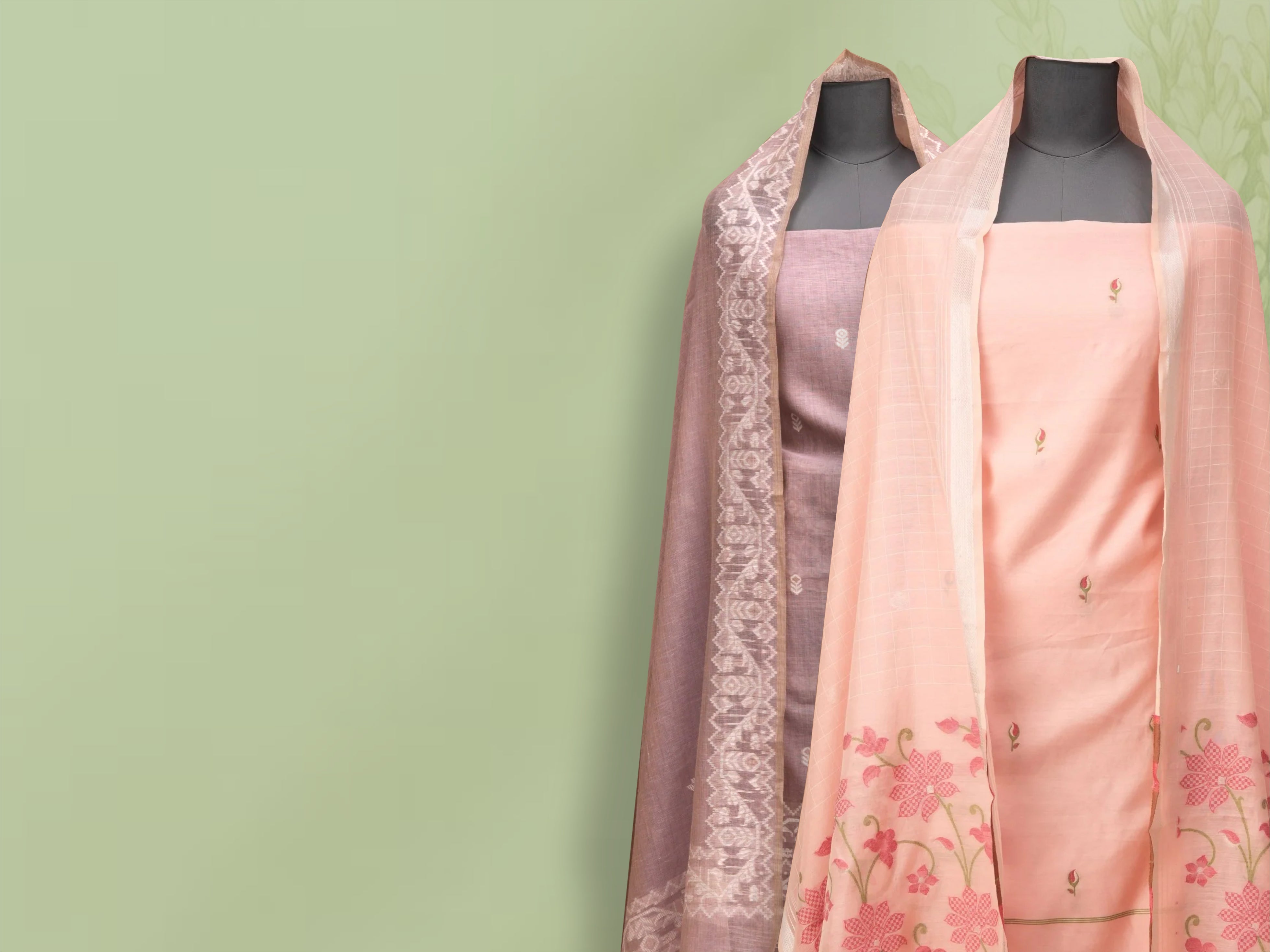 Vasantika | Rose Pink Cotton Muga Jamdani Design Jacquard Woven Saree.