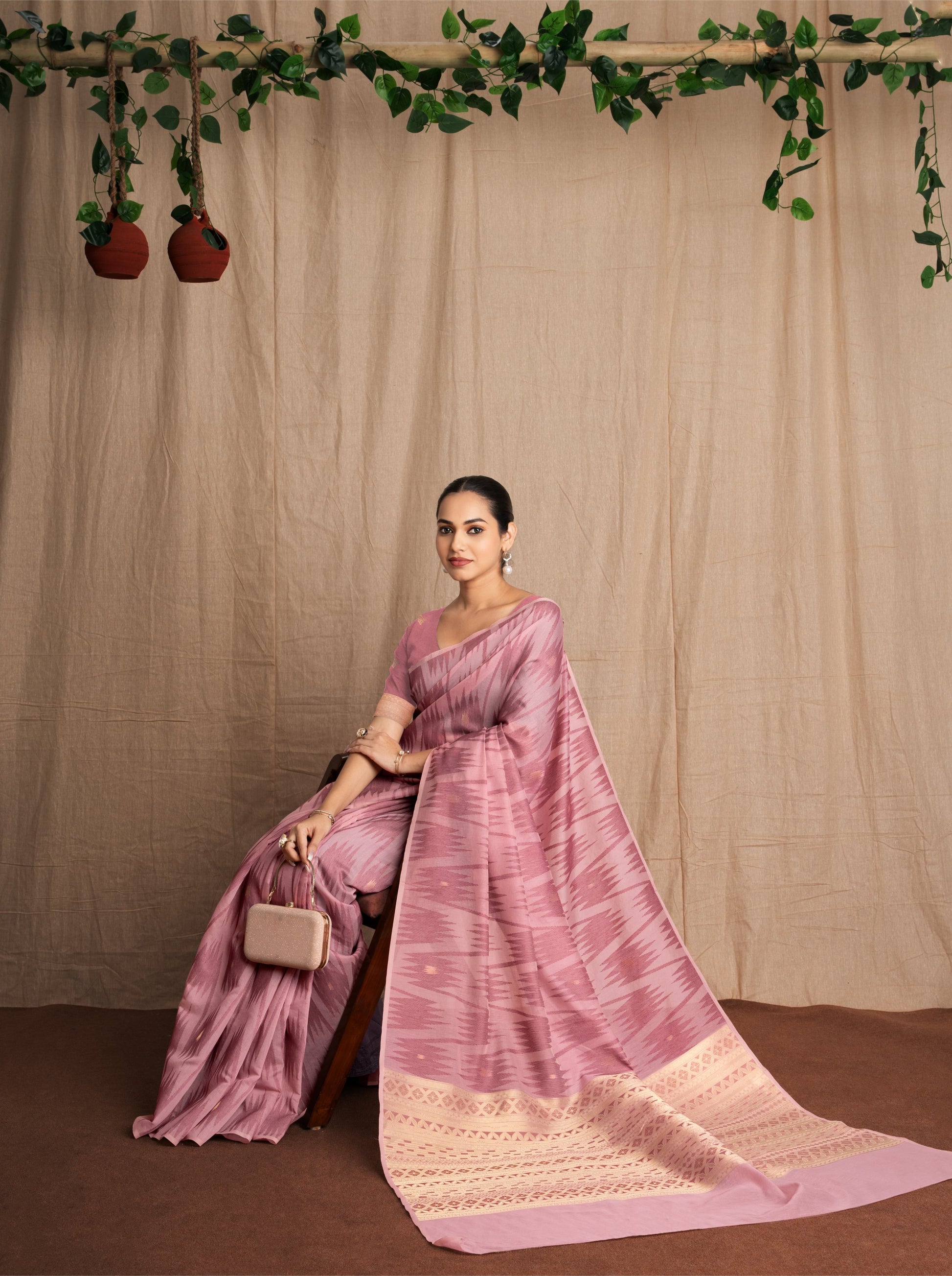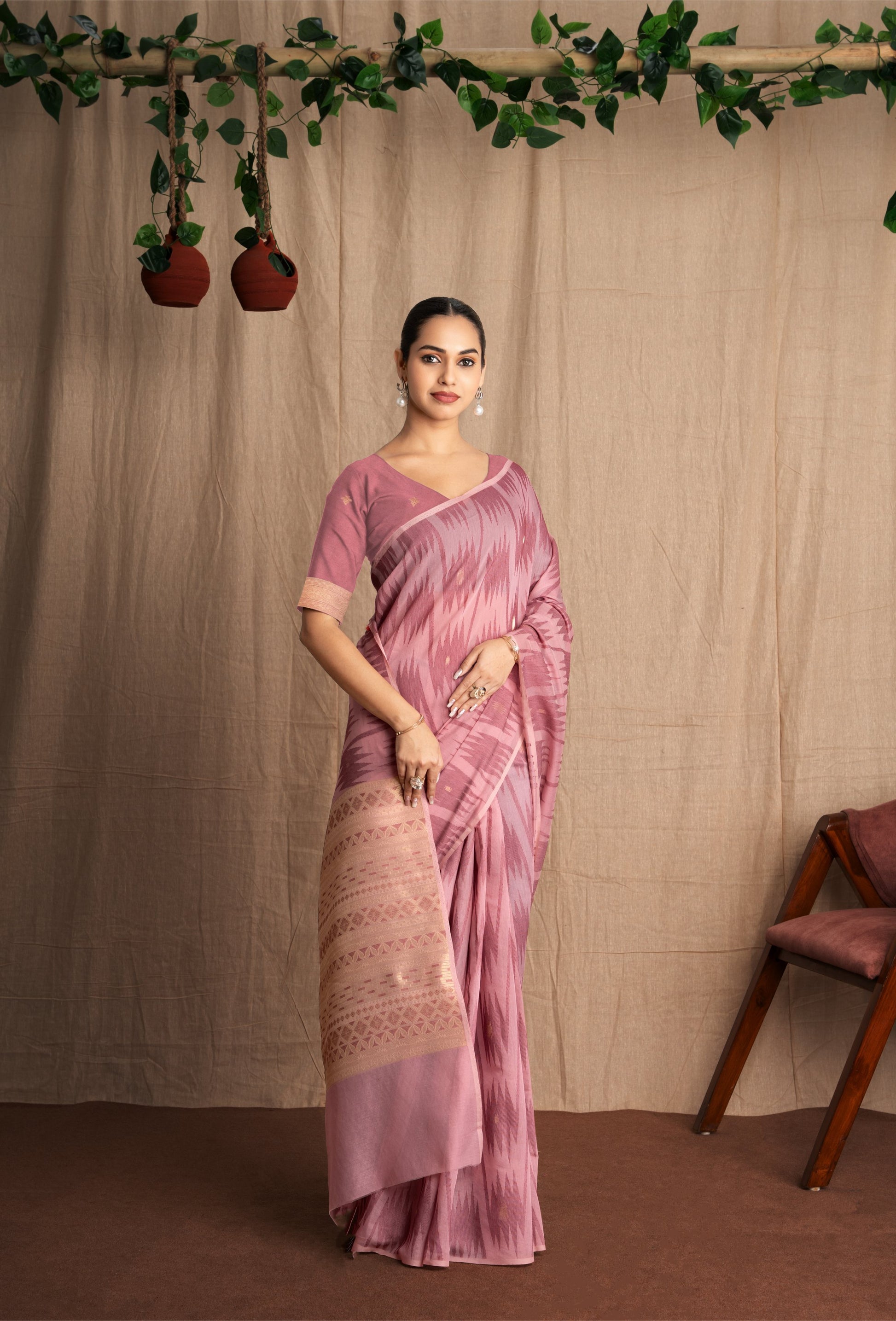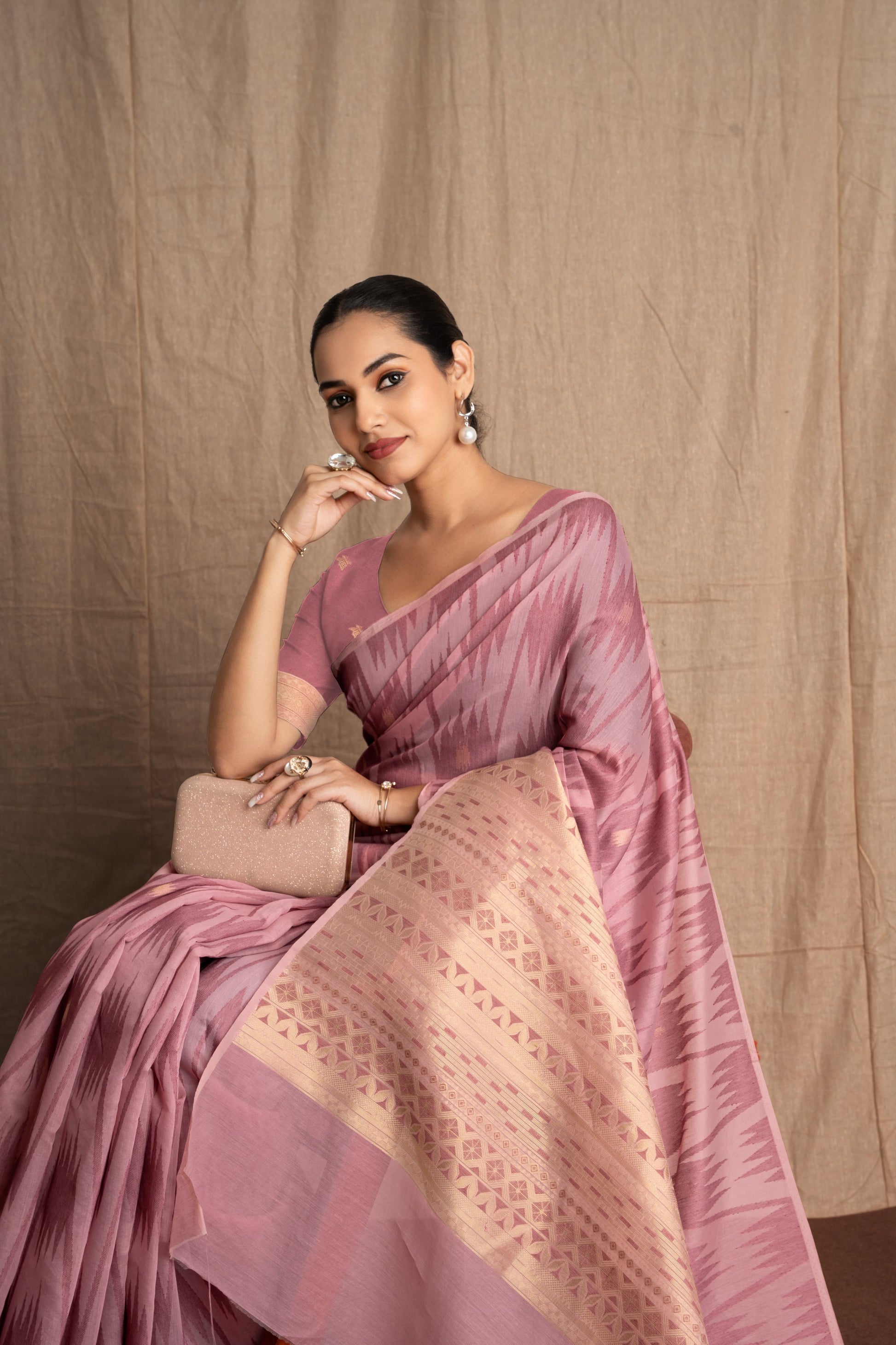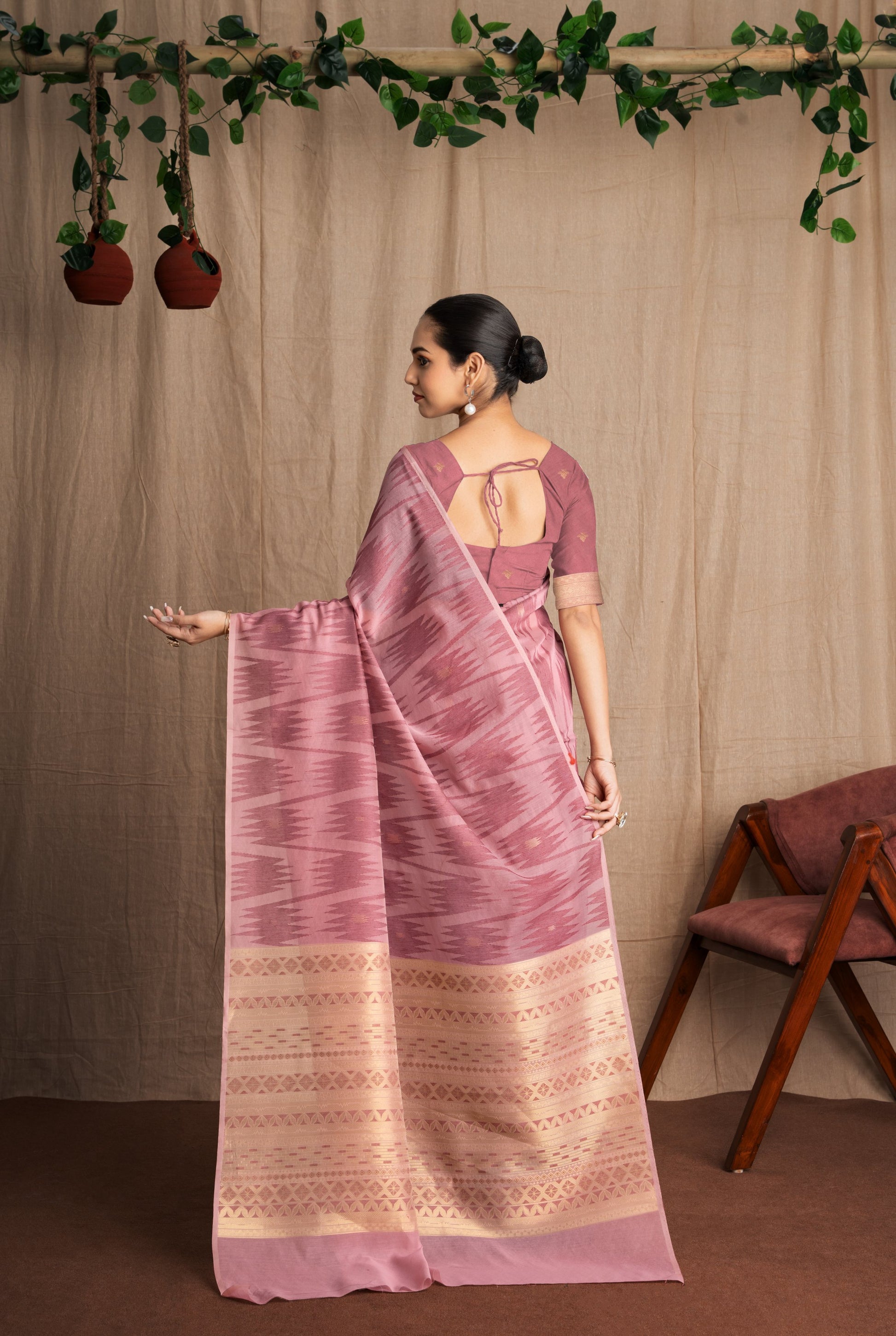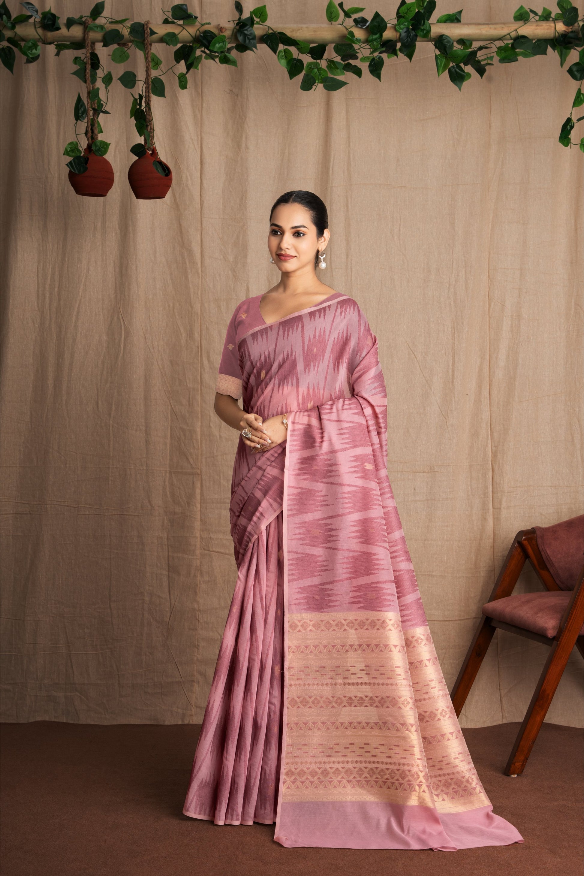 Namira | Beige Pink Soft Viscose Geometric Jacquard Woven Saree.