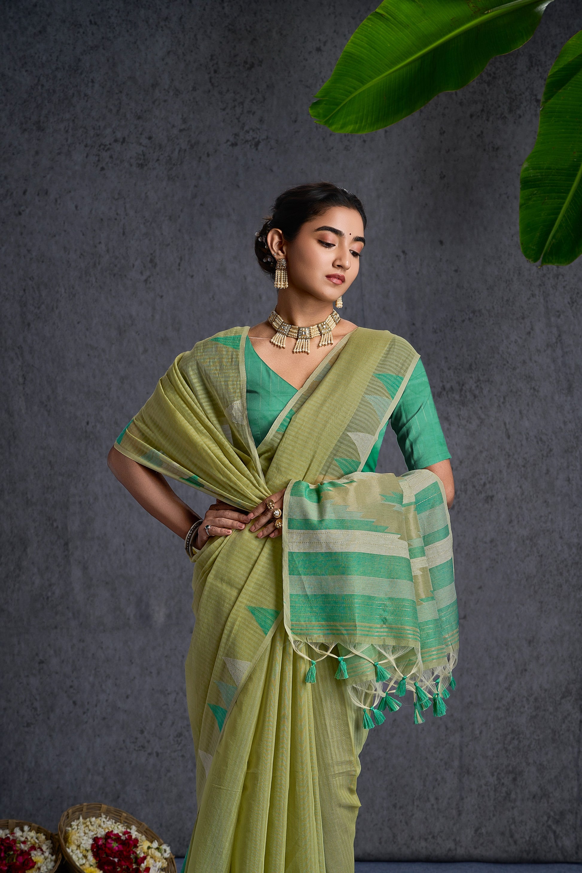 Saree Color: Pista Cream