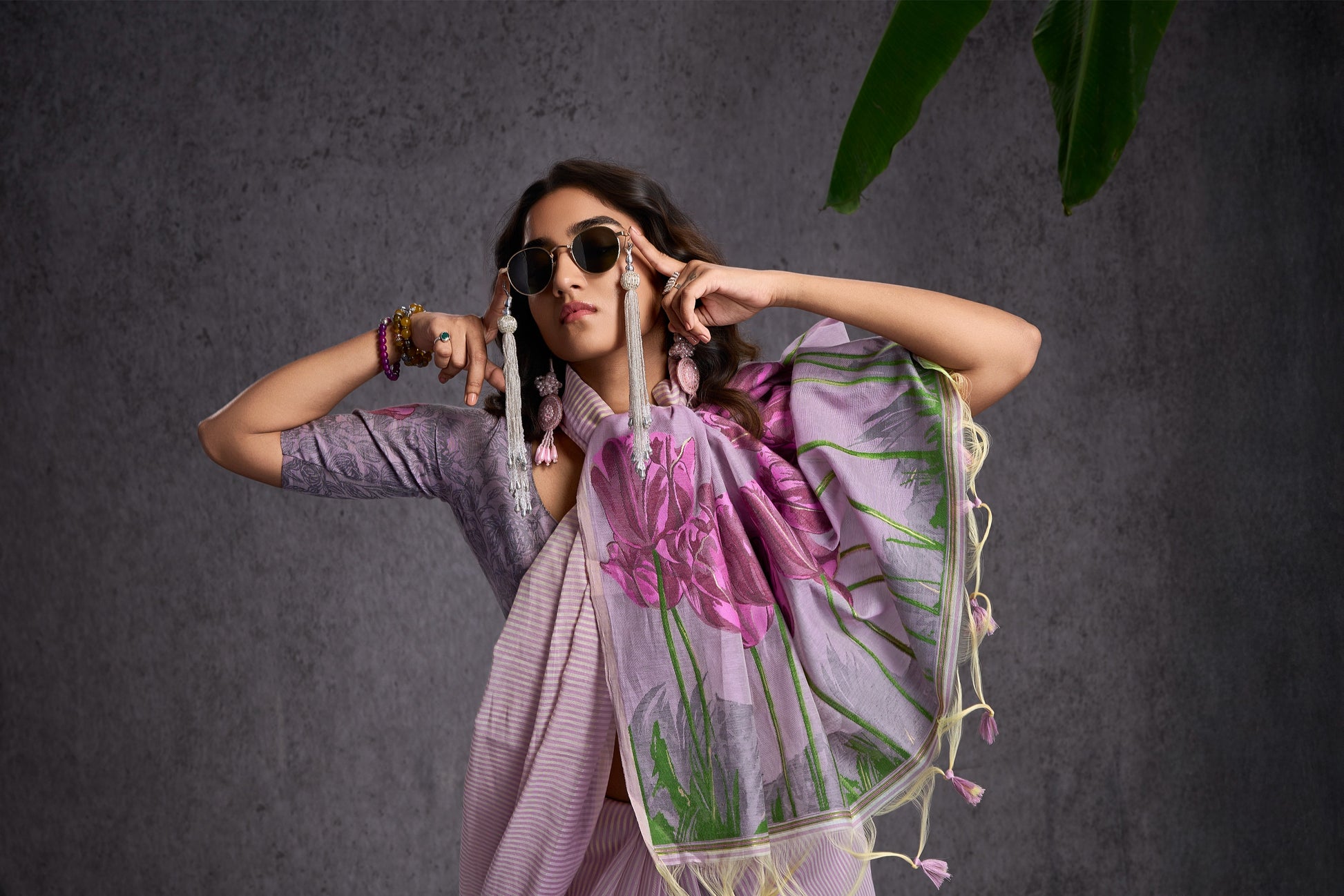 Nayra | Purple Cotton Blend Floral Design Jacquard Woven Saree.